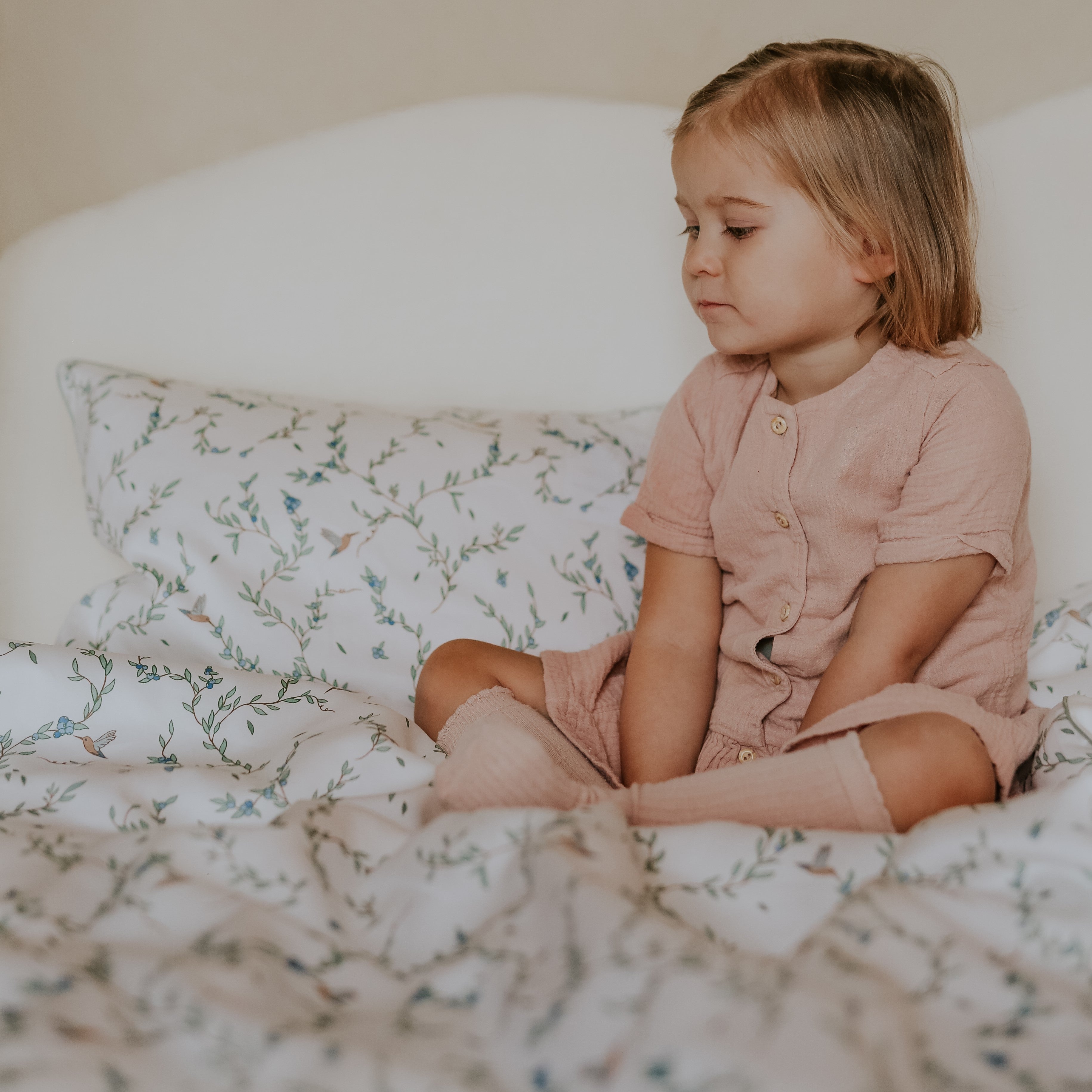 We took our original duvet and bumped up the size. Same natural materials. Same uncompromising quality. Same cozy layer. Same sense of security and ease. Same best-selling prints. The difference? Now it’s suitable for those beautiful “growing stages” that come after “baby”–for twos, threes, toddlers and beyond. Comes with: a standard Cotton Sateen pillowcase—a weave that has a softer, silkier feel compared to cotton sheets and that feel worthy of a five-star hotel ( believe us, your kids will feel the difference).