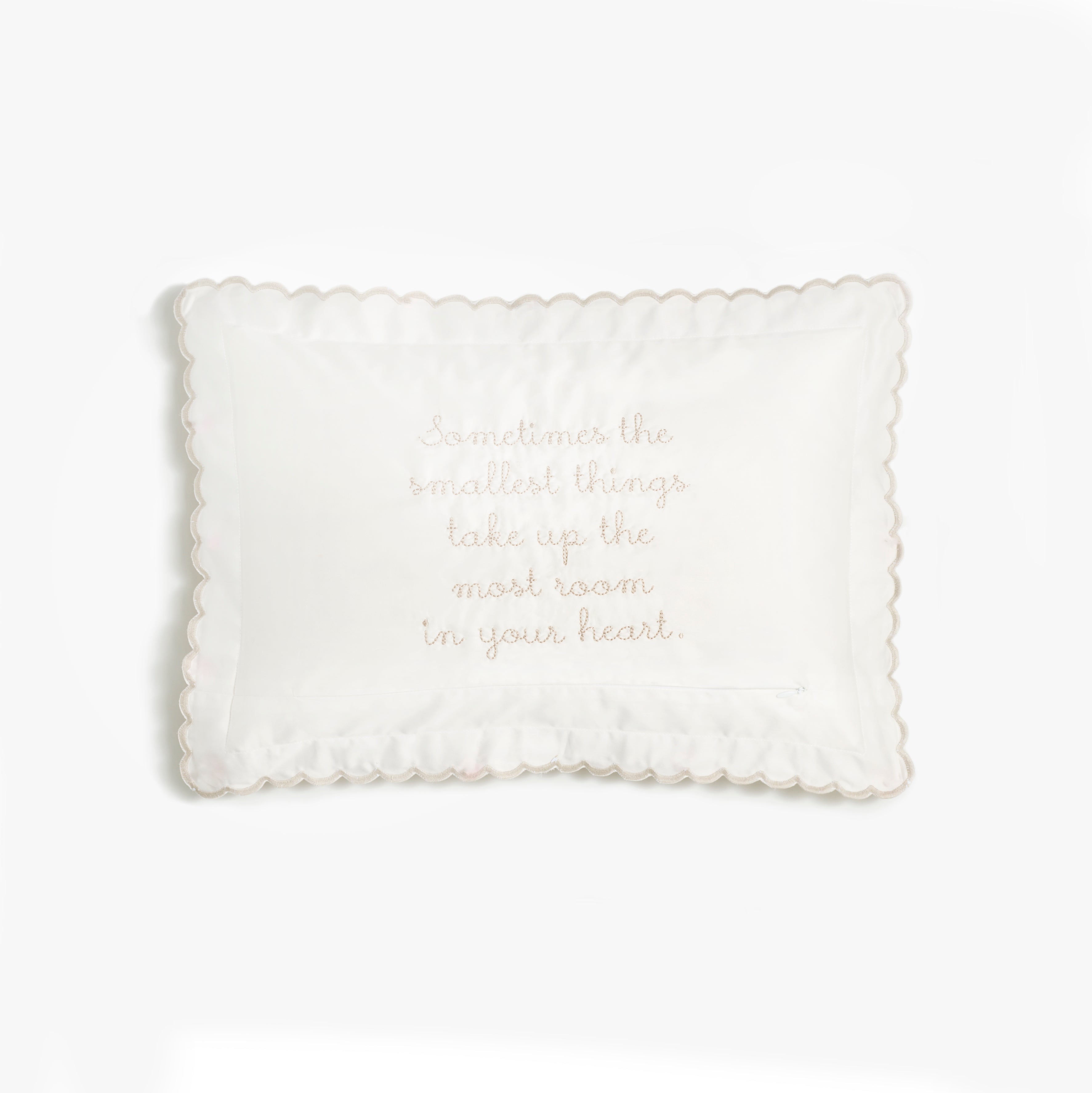 - The pillow has a discreet zipper on the back, 3 cm from the bottom stitching.