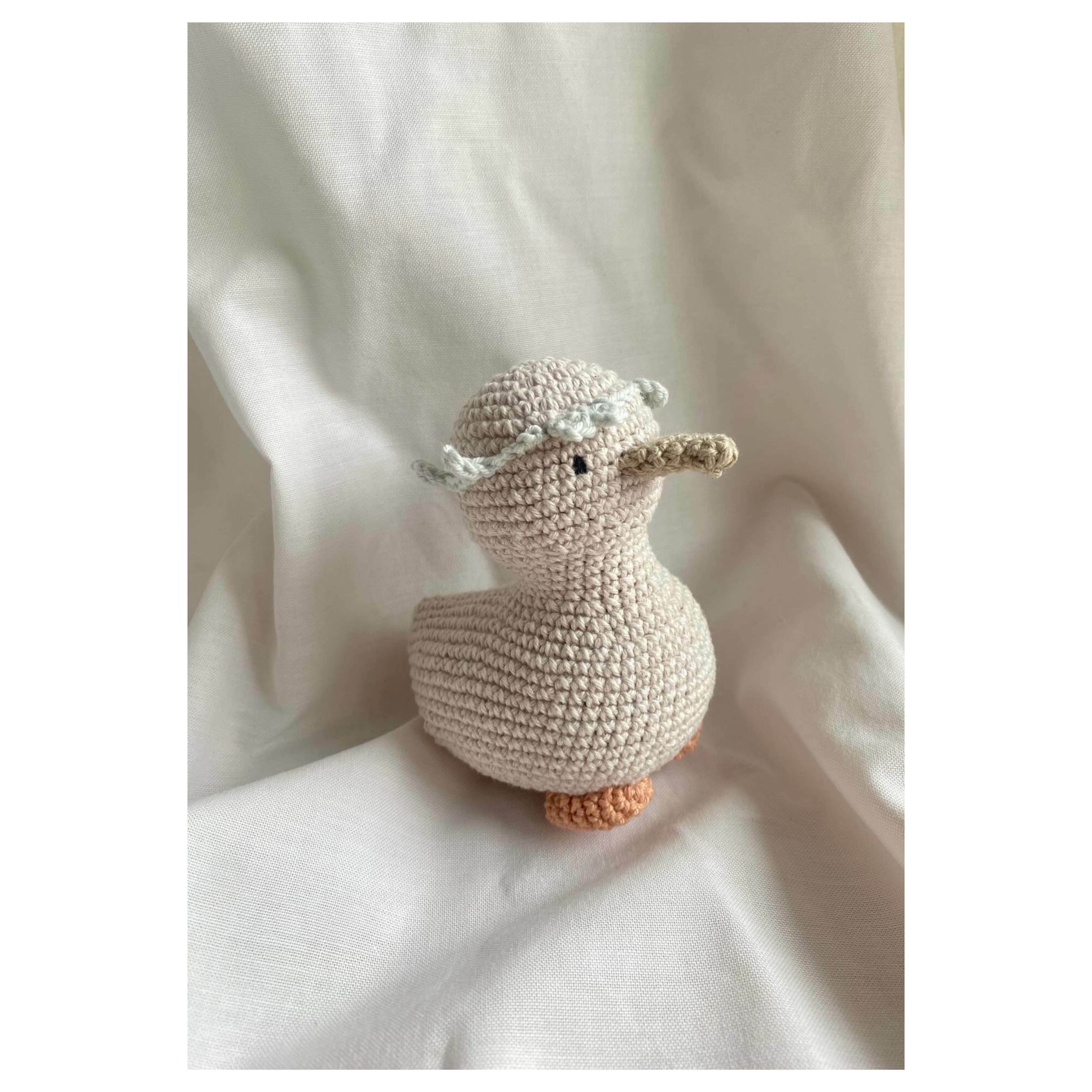 Knit Gooseling: Hand-knit by artist Dina Lea, our adorable gooseling is a playful companion for your little one's adventures.