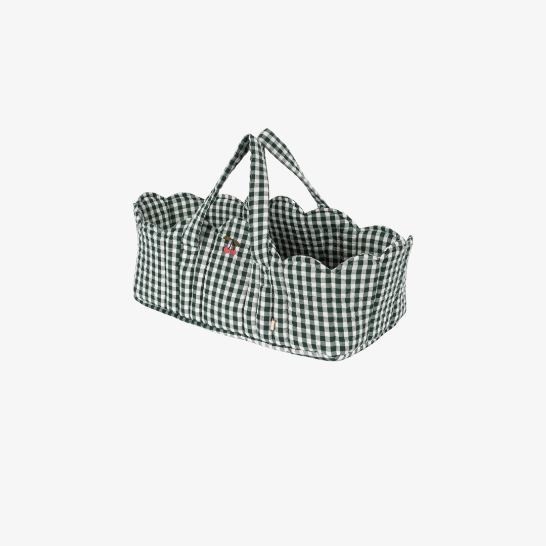 Doll Bassinet - Green Gingham