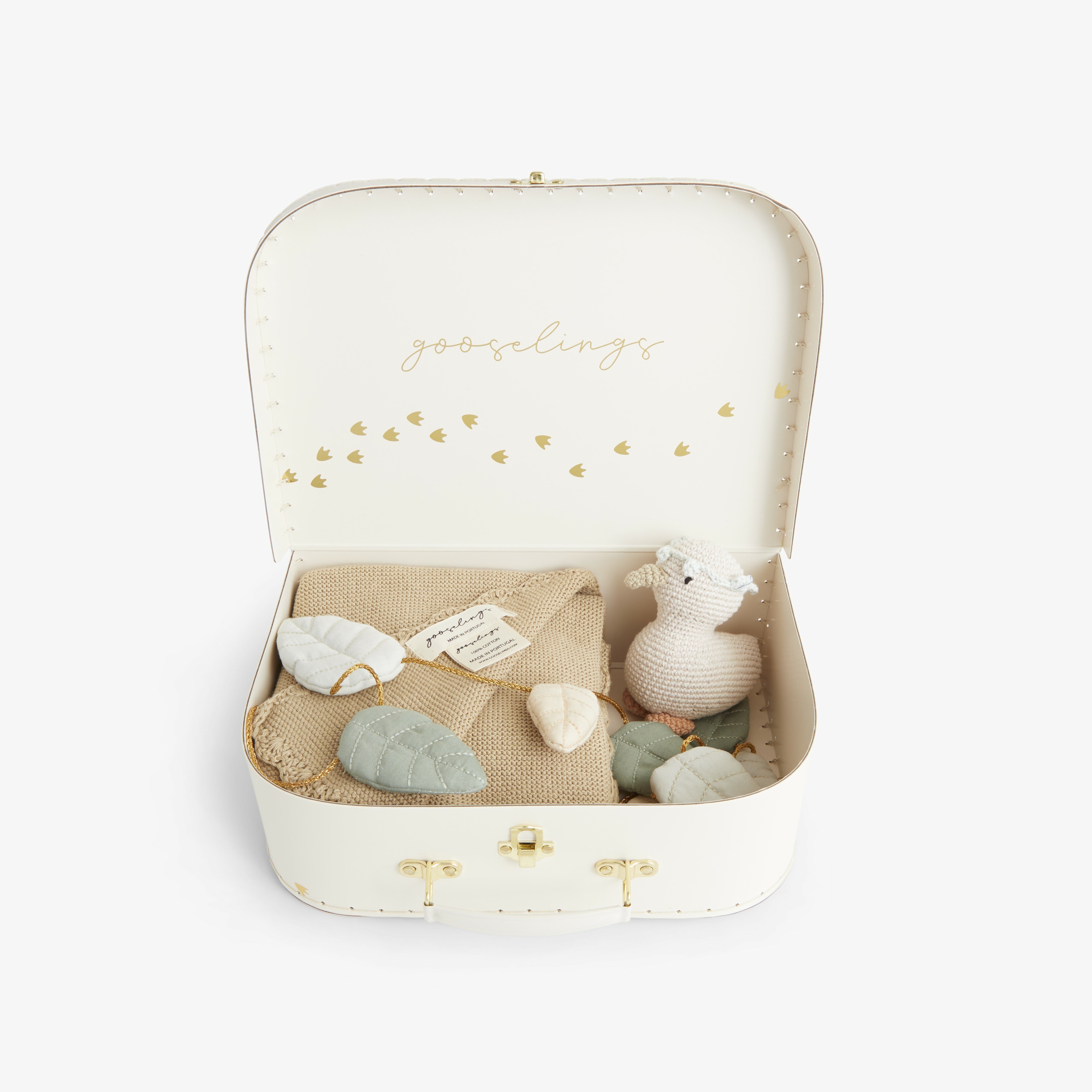 Knit Gooseling: Hand-knit by artist Dina Lea, our adorable gooseling is a playful companion for your little one's adventures.