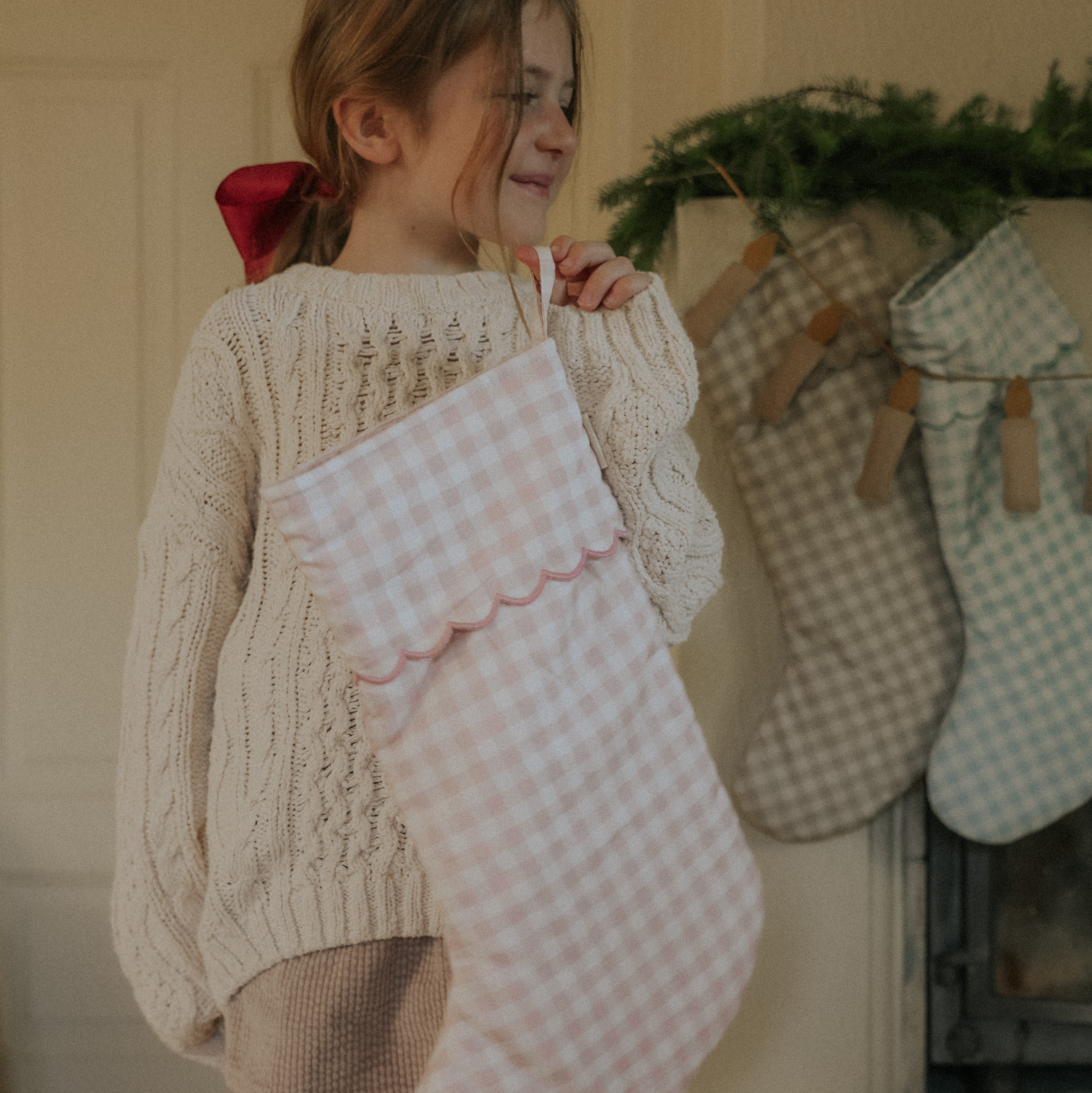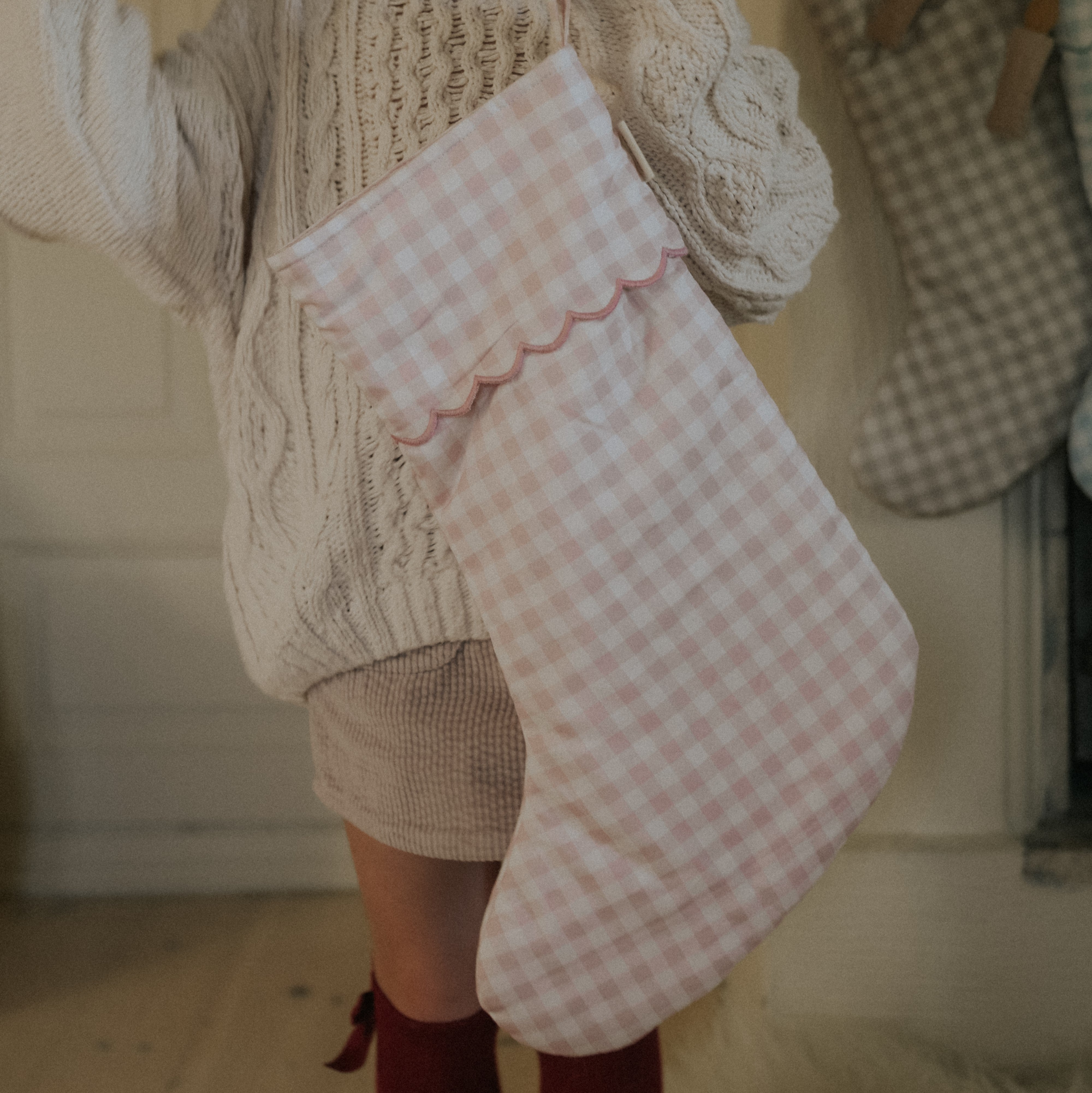 Make your holidays extra special with our Holiday Keepsake Stockings in our charming gingham print and embroidered scallop detail. Crafted with care and designed to last, these stockings add a cozy, nostalgic touch to your home or child's room. The soft, luxurious fabrics are perfect for creating cherished memories year after year. Personalize them for a thoughtful keepsake that your family will treasure for generations.