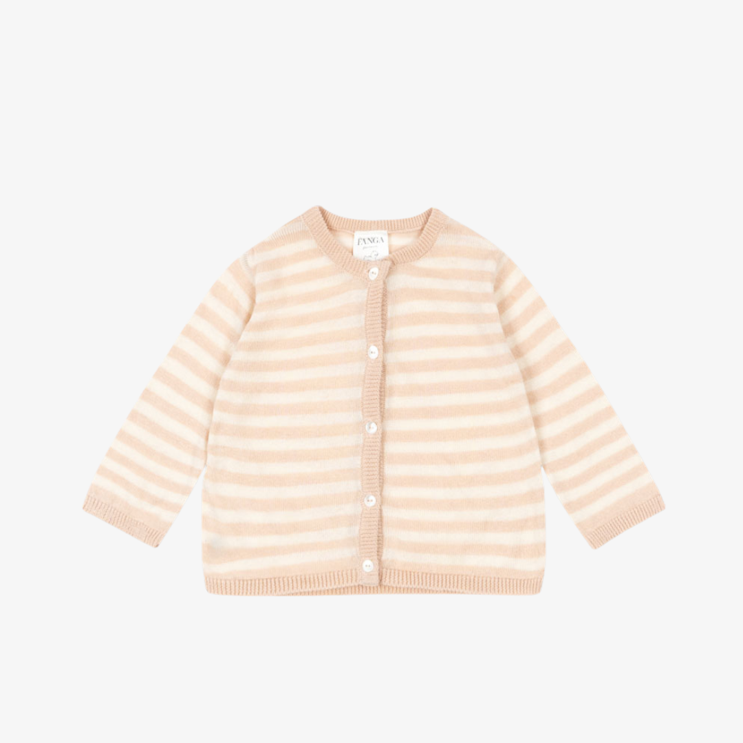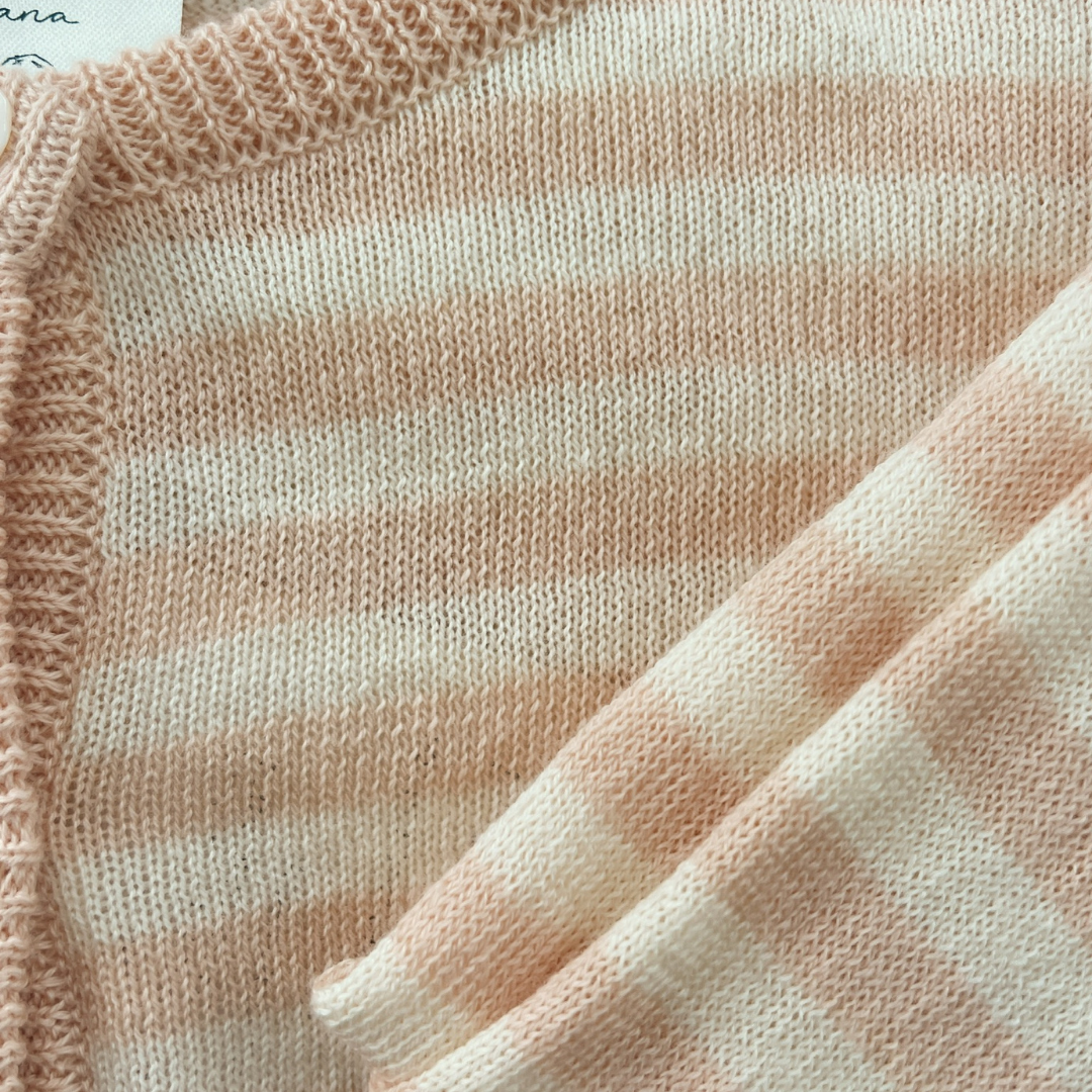 Crafted from 100% organic cotton, softly breathable and gentle on the skin. Designed with charming scalloped edges and finished with elegant mother-of-pearl buttons at the front for a timeless, cozy feel.