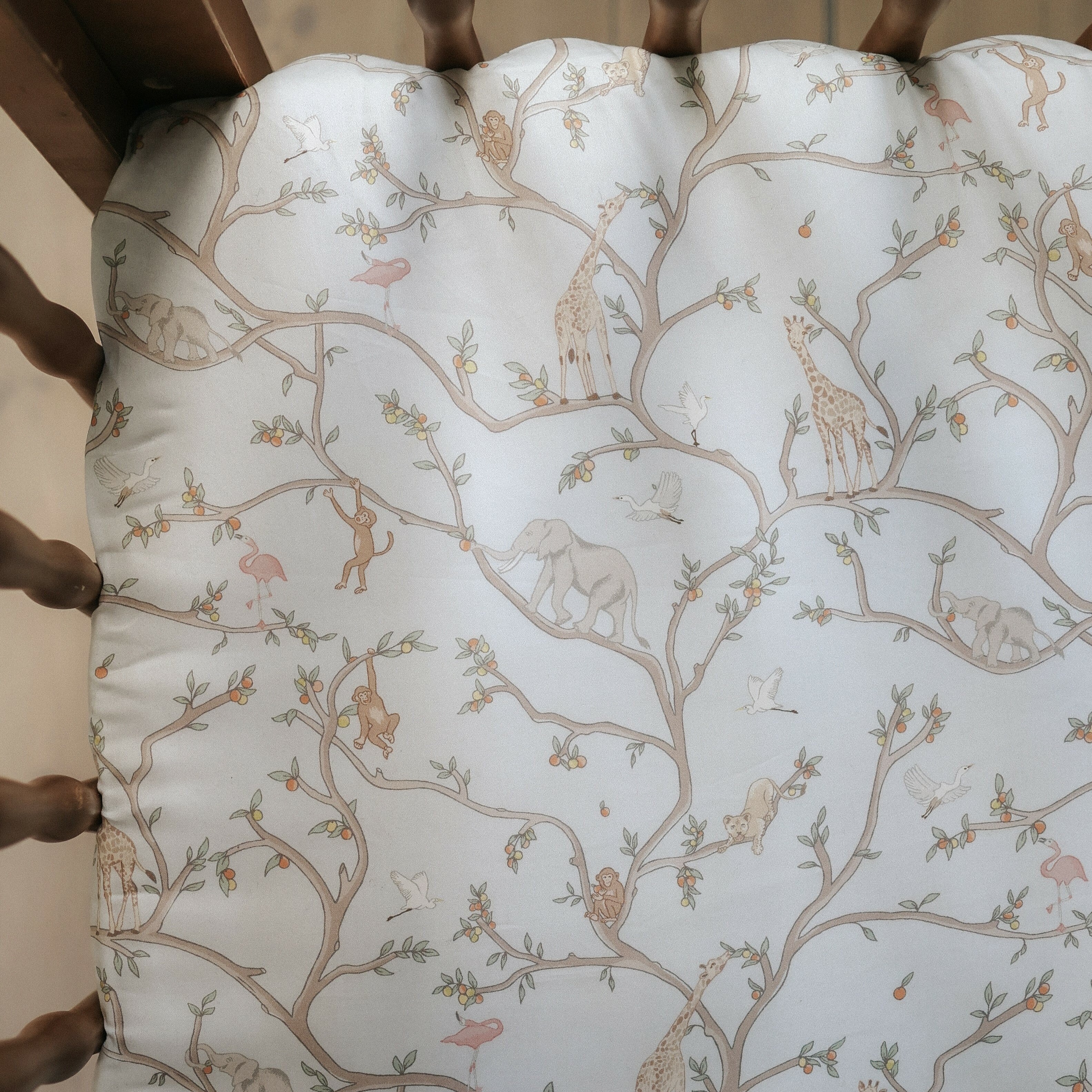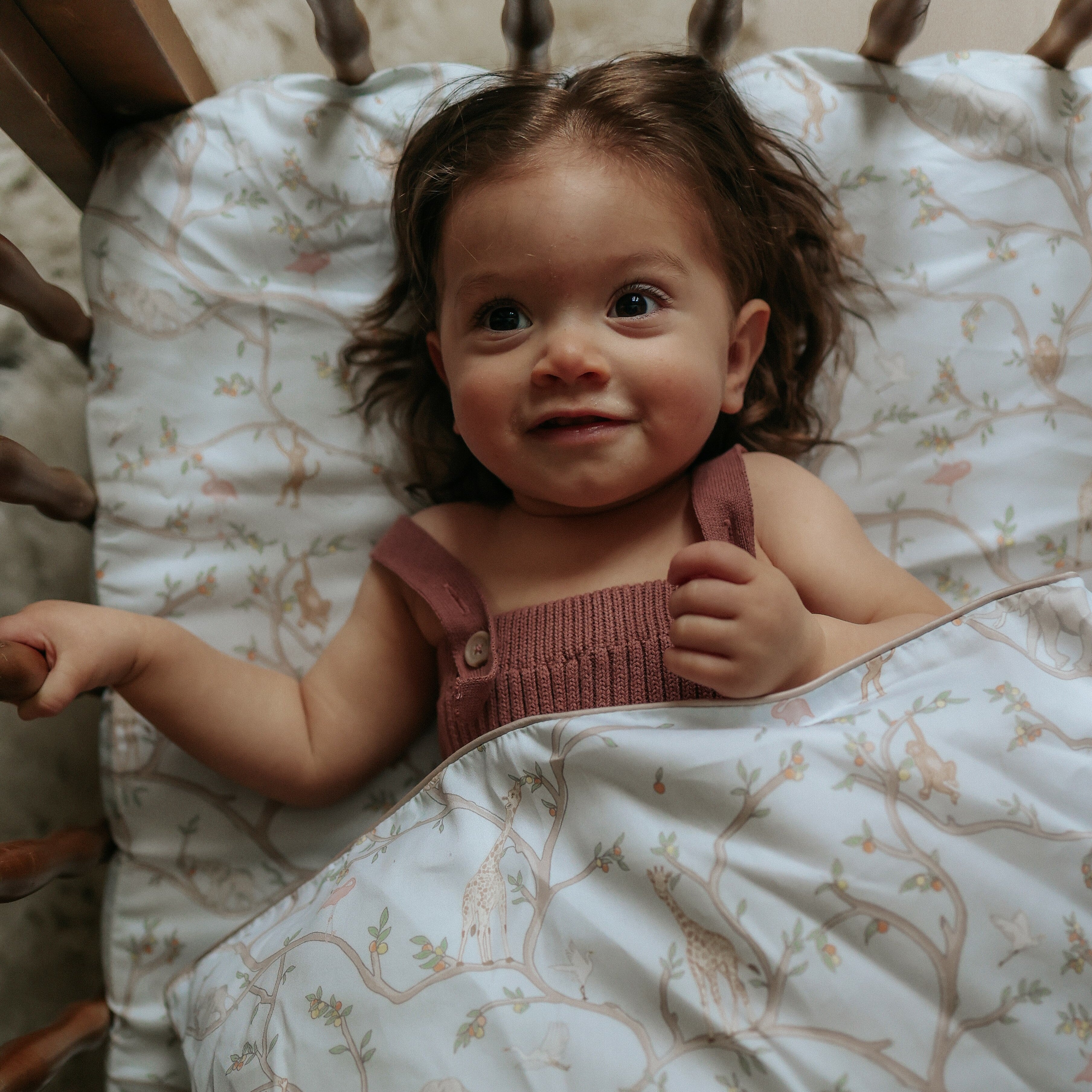 To create this extra soft crib sheet, we worked with Cotton Sateen —a weave that has a softer, silkier feel compared to cotton sheets. Lofty, breathable and keeps the baby comfortable through the night. It's also OEKO-TEX certified, which means it’s woven from only the purest materials and free of harmful toxins.