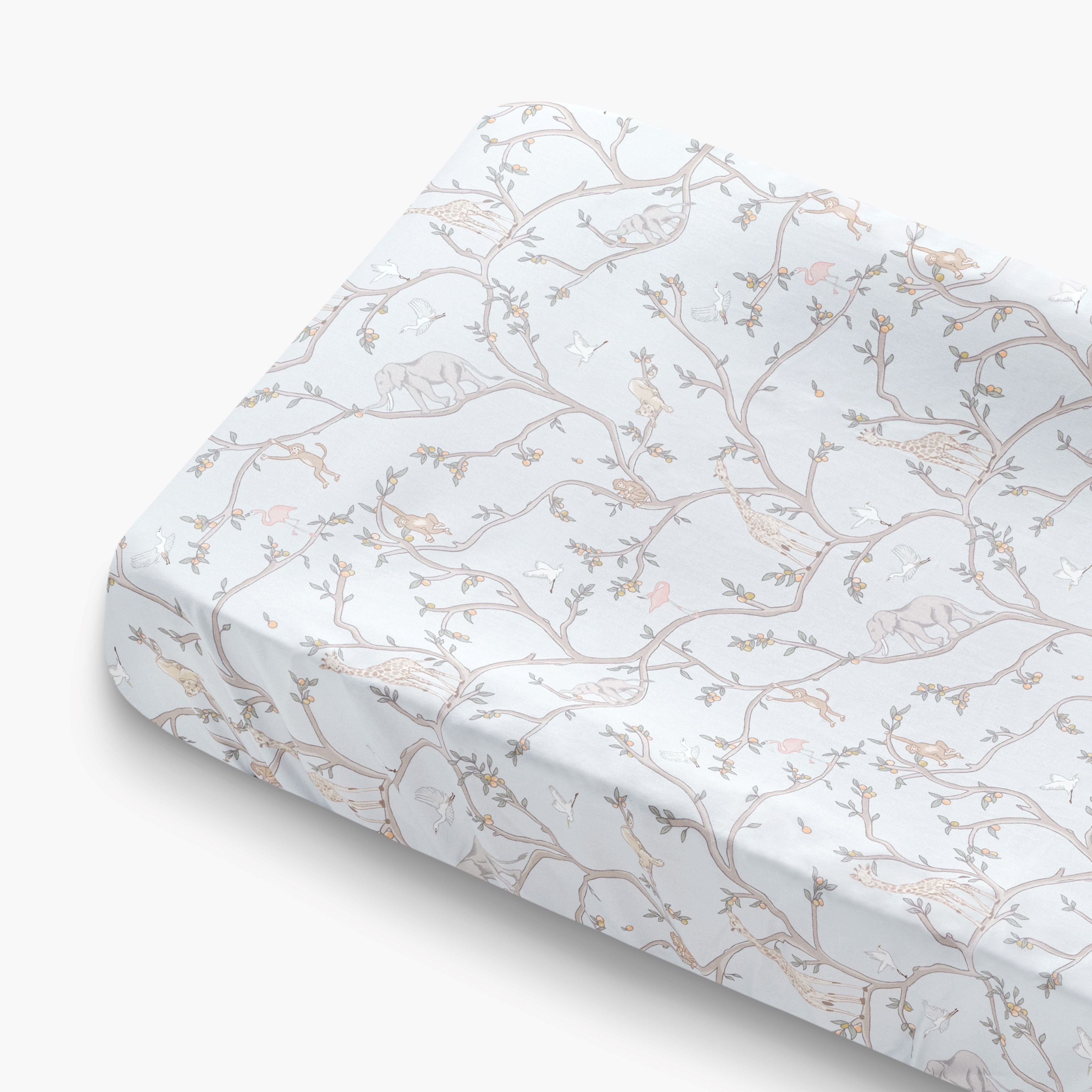 To create this extra soft diaper changing pad cover, we used Cotton Sateen—a weave that offers a silkier, softer feel compared to regular cotton. It's lofty, breathable, and keeps your baby comfortable during every diaper change. Additionally, it's OEKO-TEX certified, ensuring it's woven from the purest materials and free of harmful toxins. It also pairs nicely with a matching crib sheet, completing the cozy and cohesive look of your nursery.