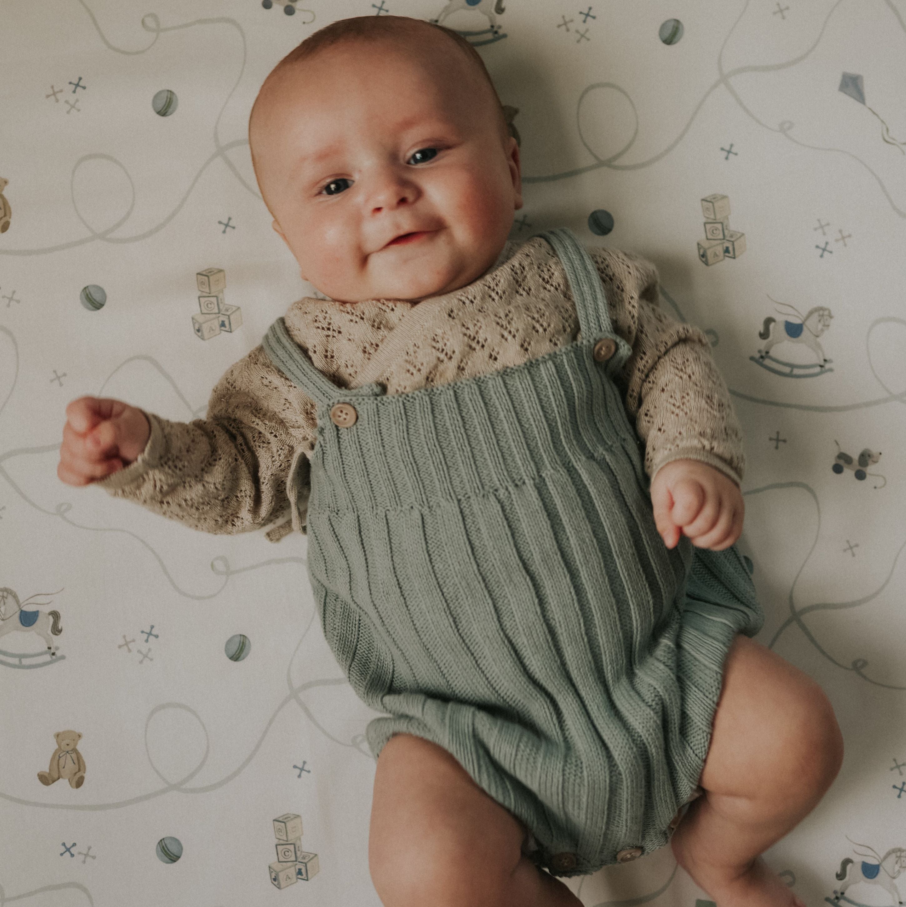 To create this extra soft crib sheet, we worked with Cotton Sateen —a weave that has a softer, silkier feel compared to cotton sheets. Lofty, breathable and keeps the baby comfortable through the night. It's also OEKO-TEX certified, which means it’s woven from only the purest materials and free of harmful toxins.