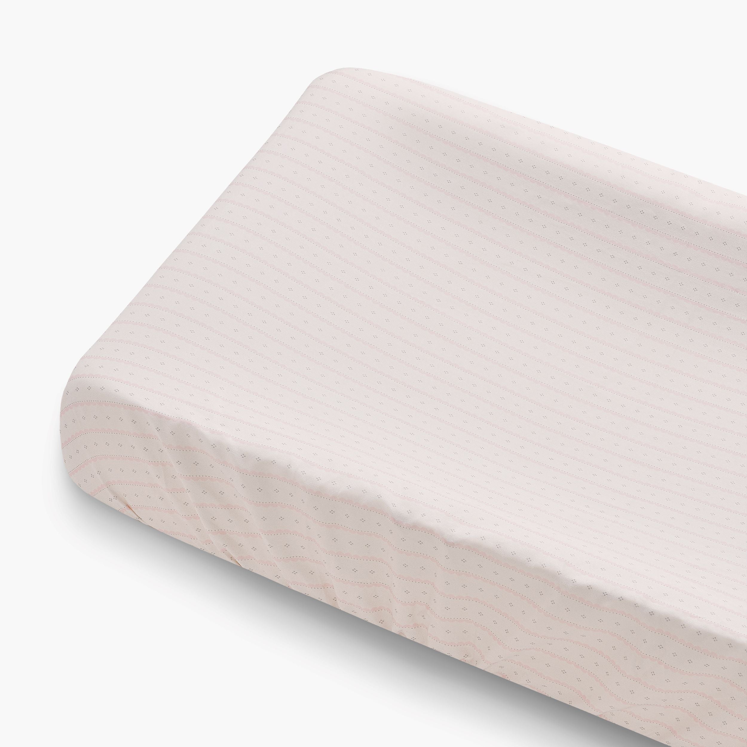 To create this extra soft diaper changing pad cover, we used Cotton Sateen—a weave that offers a silkier, softer feel compared to regular cotton. It's lofty, breathable, and keeps your baby comfortable during every diaper change. Additionally, it's OEKO-TEX certified, ensuring it's woven from the purest materials and free of harmful toxins. It also pairs nicely with a matching crib sheet, completing the cozy and cohesive look of your nursery.