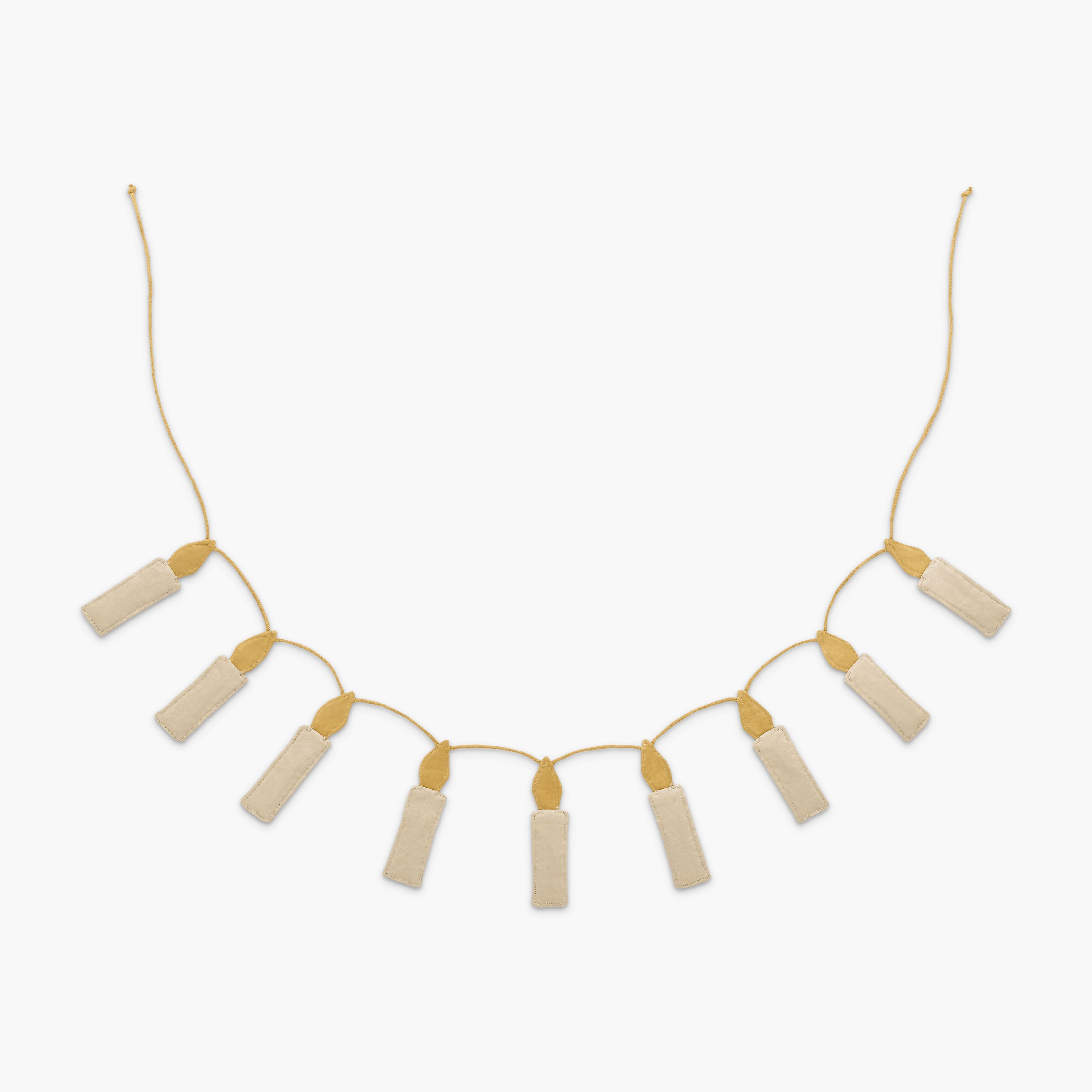 Celebrate in style all year round with our cozy Candle Felt Garland, perfect for Hanukkah, Christmas, and any special occasion. Featuring soft, hand-crafted felt candles in warm shades of white and gold, this garland adds a festive glow to any space. Whether for holiday gatherings or everyday moments, it brings a timeless, hygge-inspired charm, making it a beautiful addition to your celebrations throughout the year.