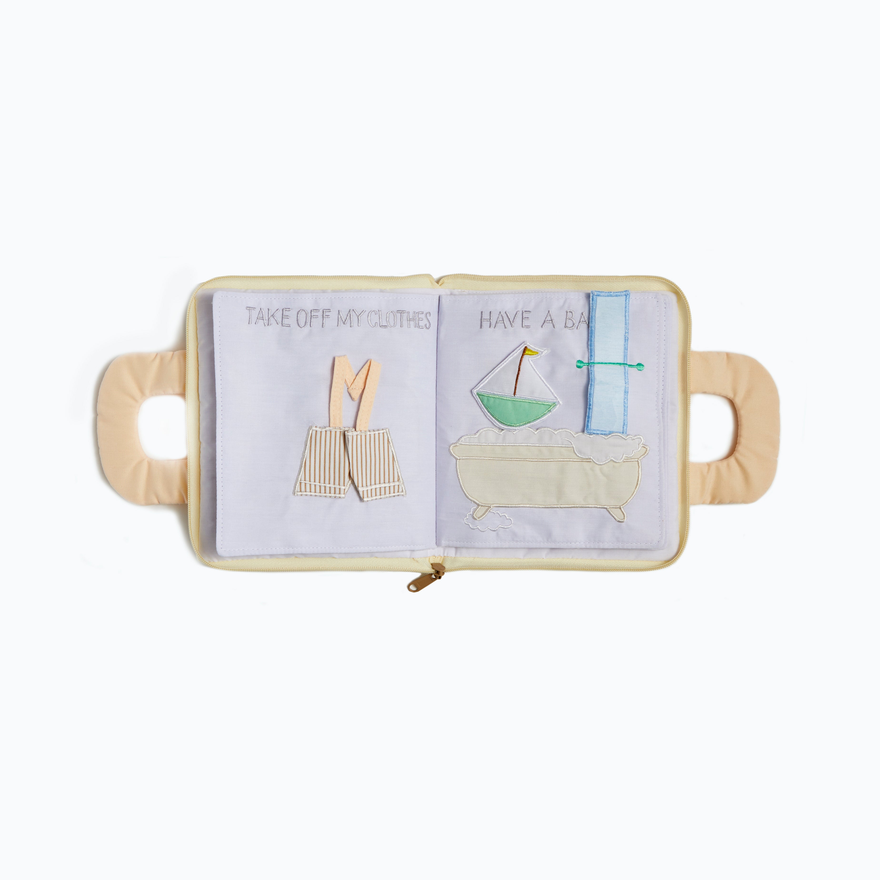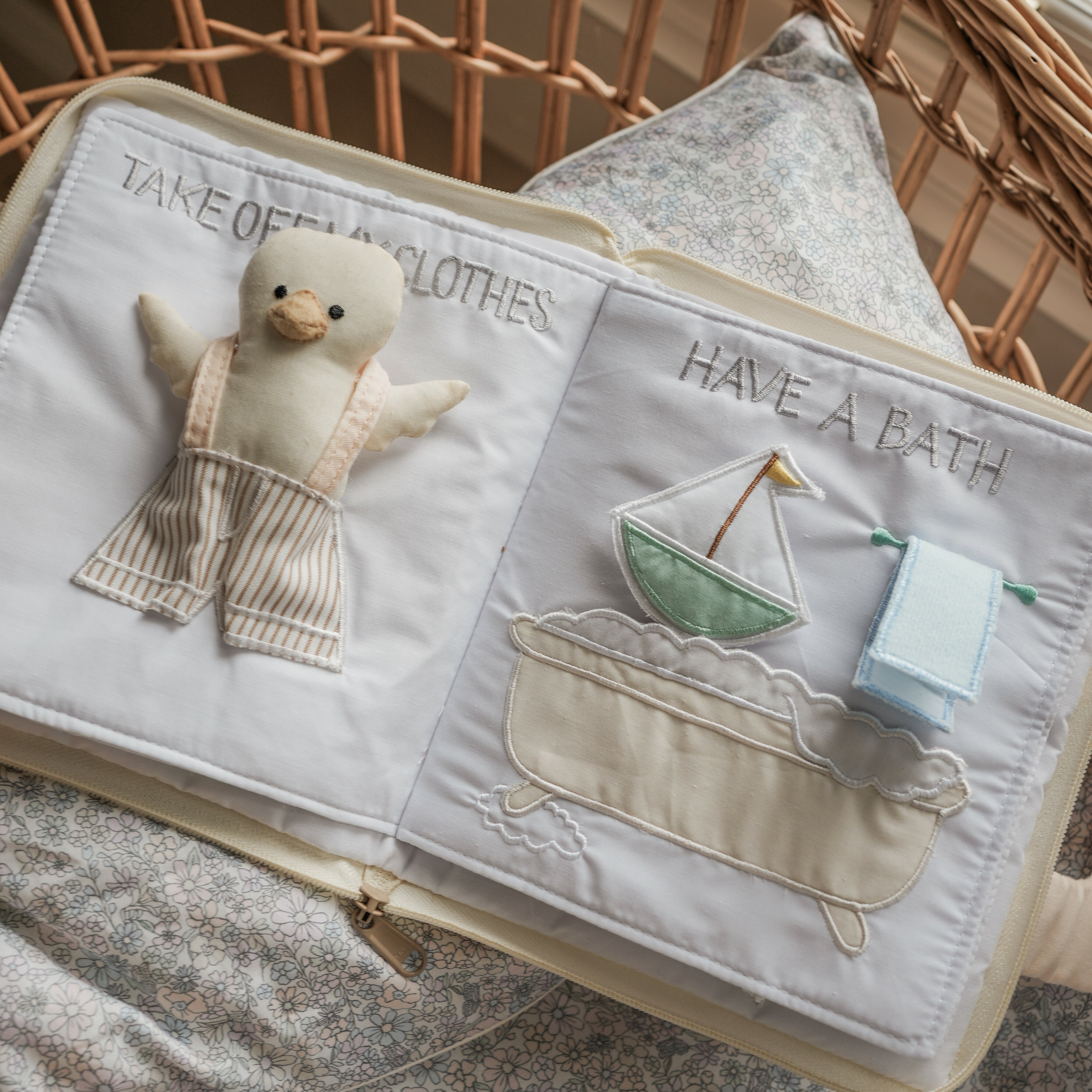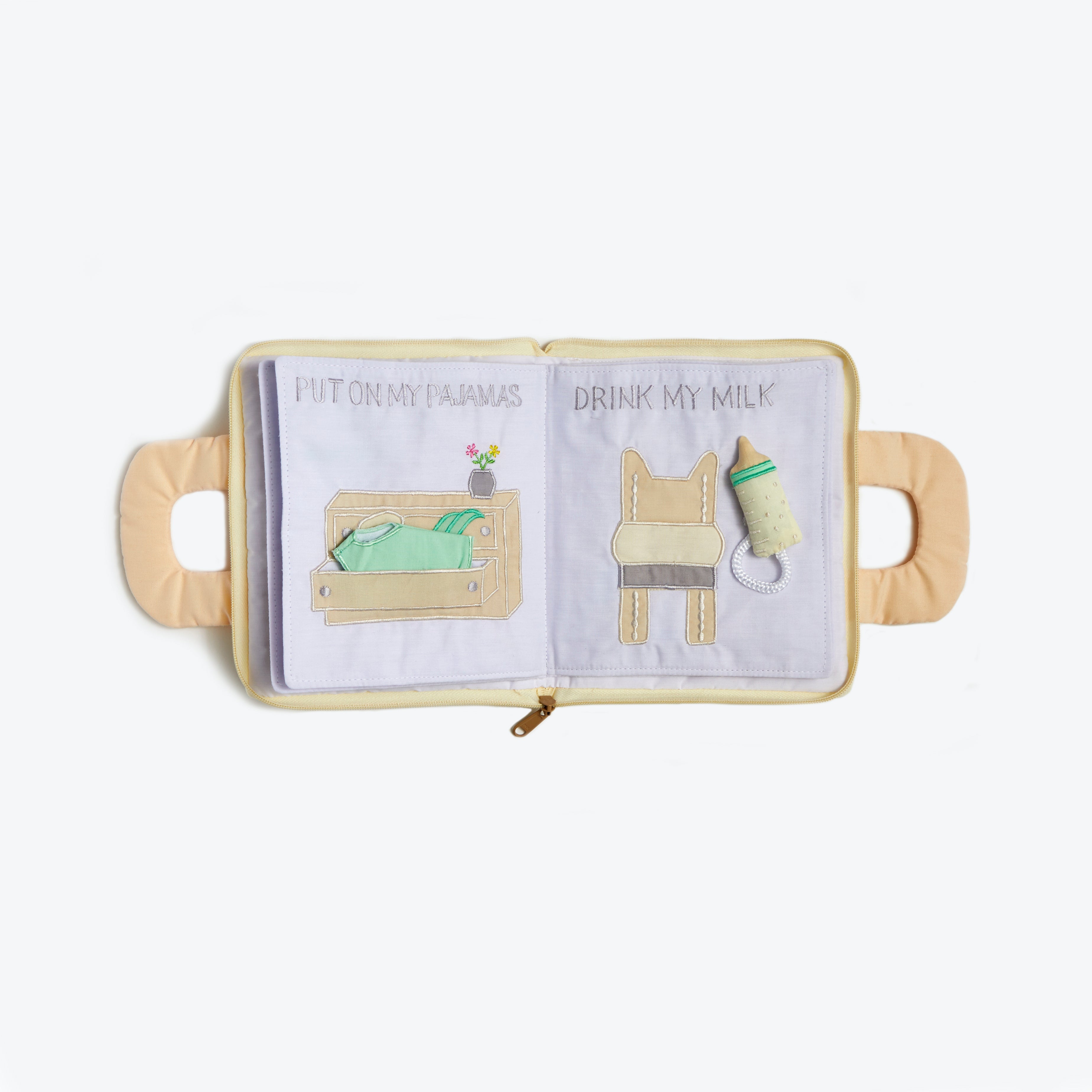 This beloved activity book is a timeless favorite, designed to enhance the joy and comfort of your little one's bedtime routine. As the adorable gooseling prepares for bed, it embarks on a series of engaging tasks: tidying up toys, shedding its feathers, enjoying a soothing bath, slipping into cozy pajamas, brushing its beak, and eagerly listening to a sleepy story. With durable handles for easy transport and a secure zipper closure, this book promises to be a trusted companion throughout all your adventures, offering gentle reminders of their essential sleep routine.